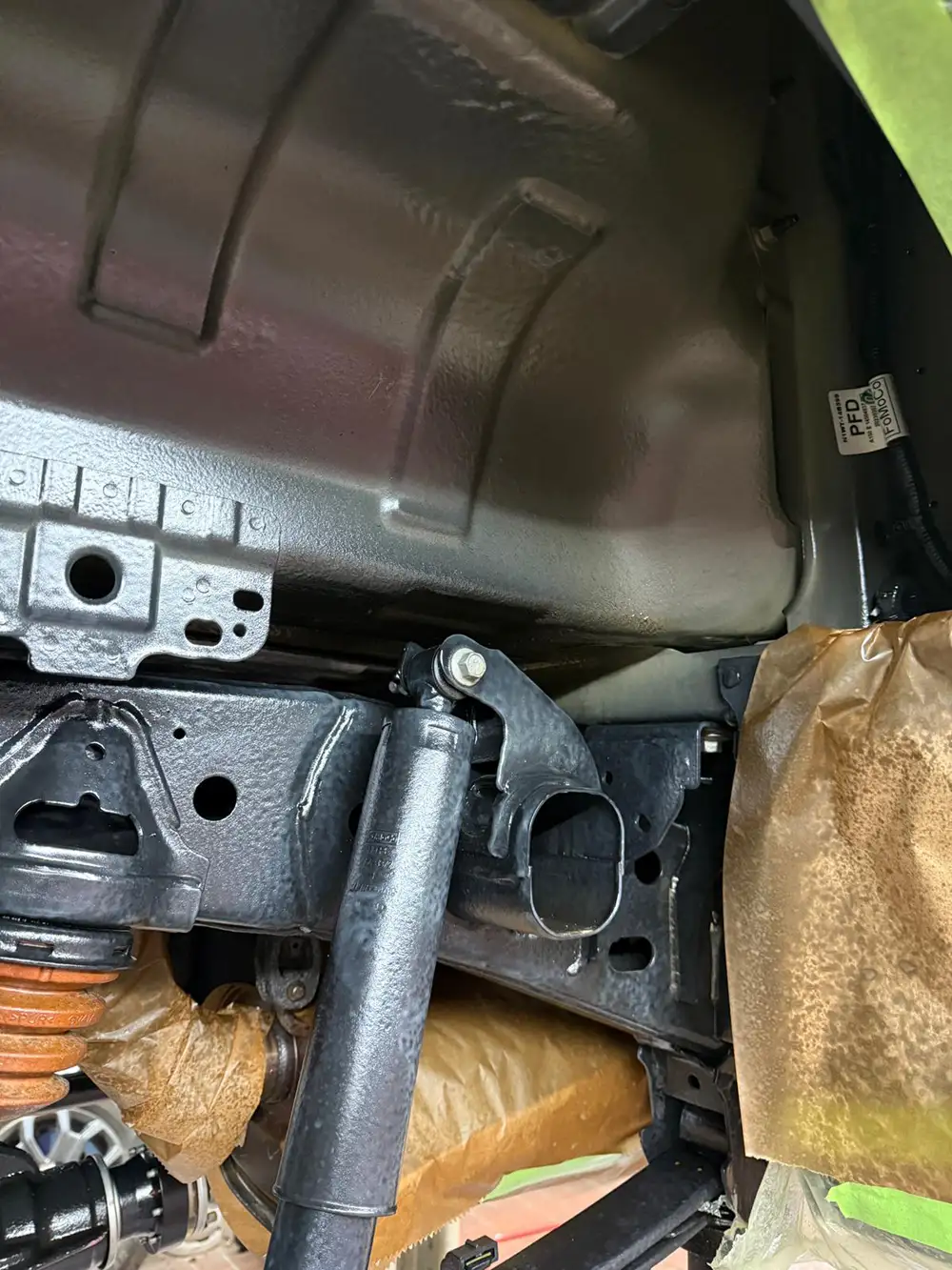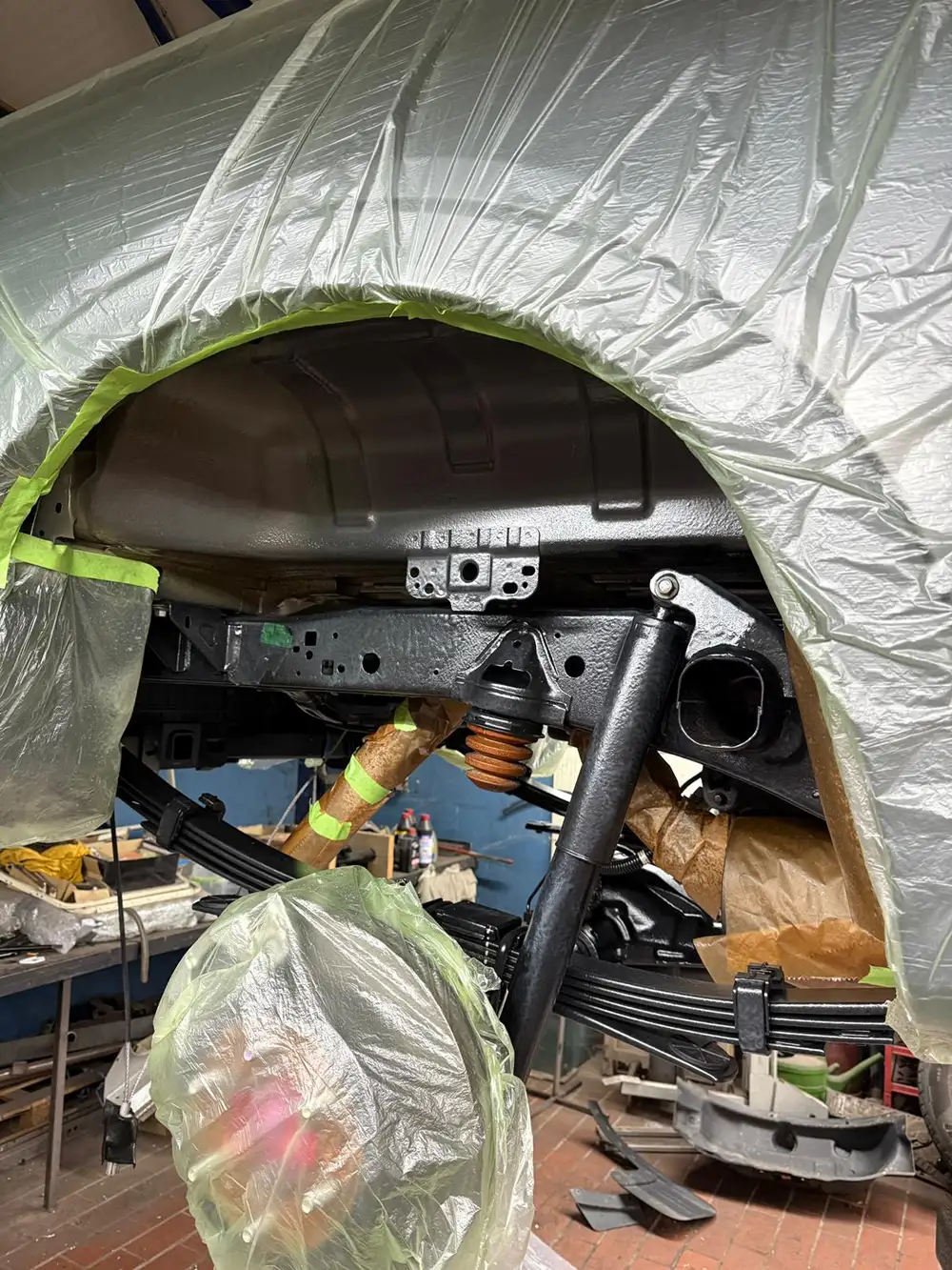 Dabei handelt es sich um Kanten, Kastenformen, Halter, Winkelbleche, Tankhaltebänder, Bremsleitungen und deren Halter. Auch die Flächen in den Radhausschalen werden sorgfältig versiegelt.